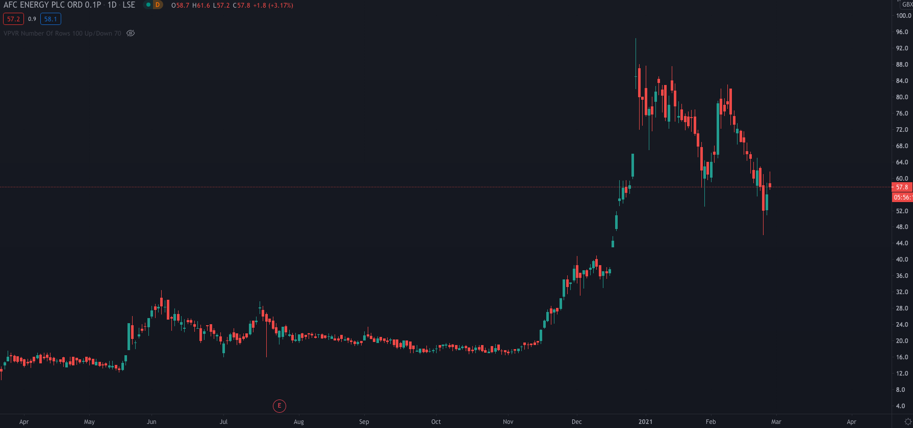 Shares of AFC Energy are currently trading 3.39% higher at 57.9p following the announcement. Earlier in the session, they climbed to highs of 61.6p.