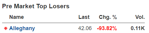 - The ticker is showing Alleghany Corporation down 93% premarket