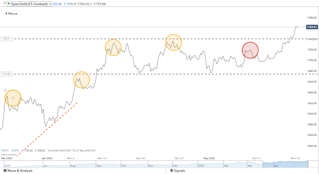 Price correlation between gold and bitcoin has developed as the crypto is seen as the safe-haven asset for the digital generation. A scan of gold prices, therefore, provides a confirmation signal for bitcoin bulls looking to enter a long-position at IG.