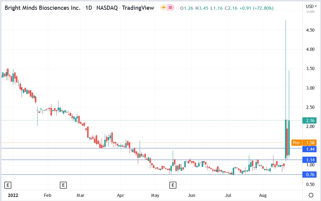 Bright Minds stock has attracted significant attention from investors, and there is an ongoing battle between the bulls and bears, with each side struggling to emerge the winner. Over the past few days, the company’s stock has traded as high as $4.75 and as low as $0.82.