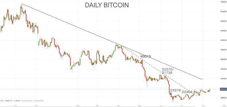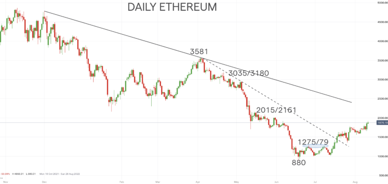 For BTC, the initial August/ September targets would be the 31738/32370 area. For ETH, we would see the threat for a move towards the 2015/2161 area over the same period, maybe as high as 3035/3180.