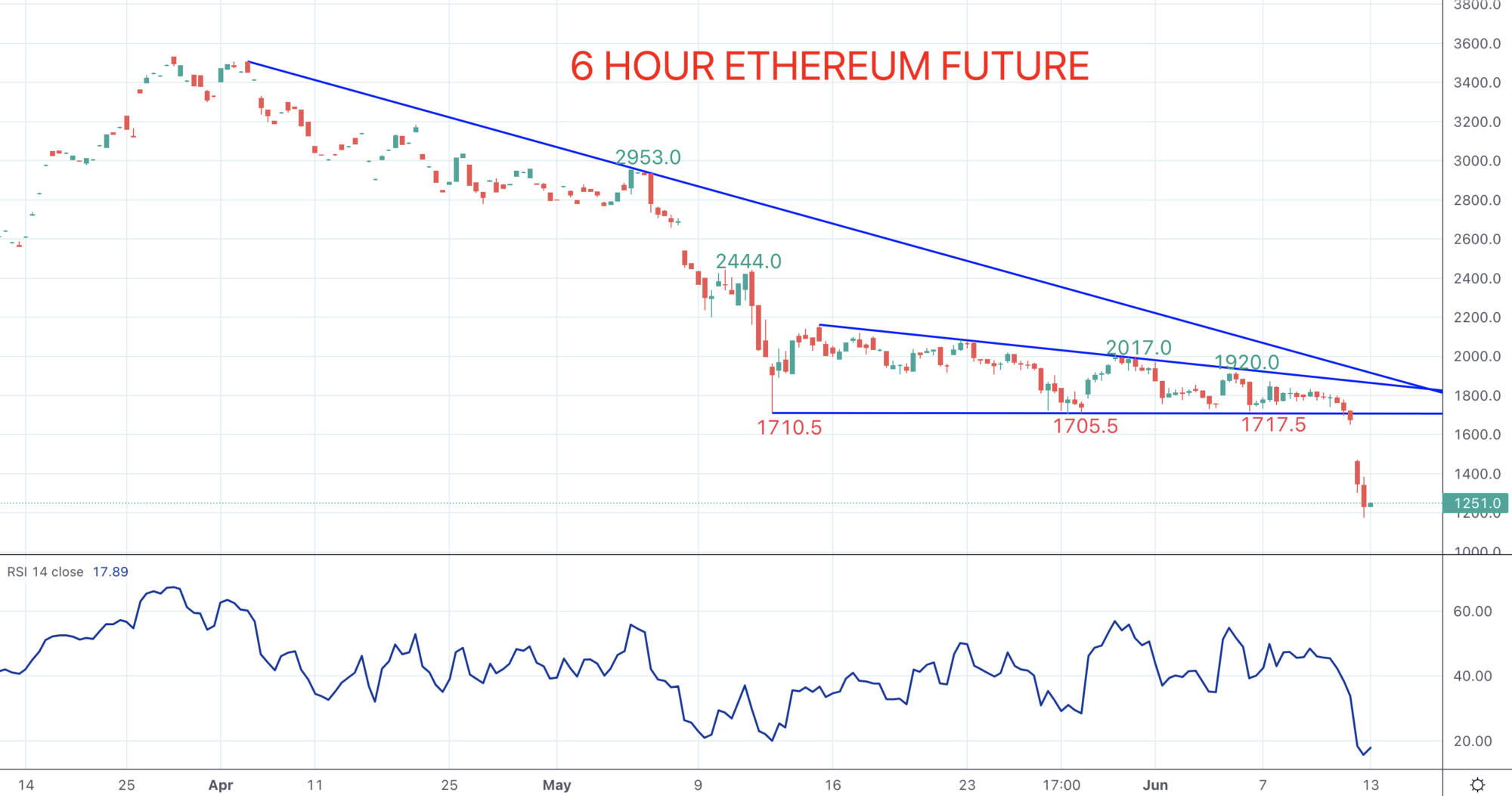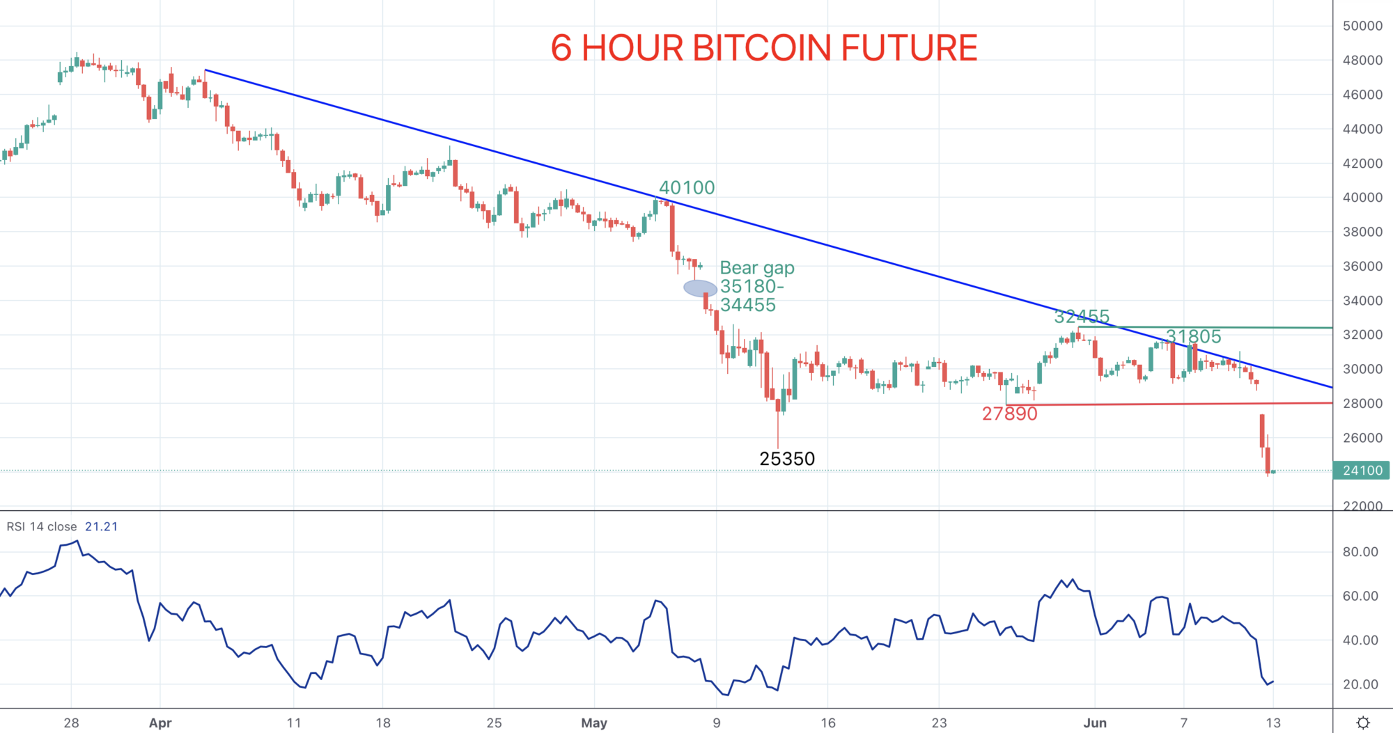 These inflationary forces saw US stock averages plunge on Friday and pushed cryptocurrencies lower too. However, it was on Sunday trading and into Monday that cryptocurrencies have really reacted to this information, plunging aggressively lower through key support levels and according to a CNBC report wiping over $200 billion (and likely more) off of the cryptocurrency market.