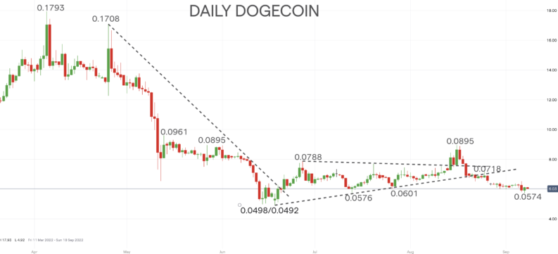 As with most other cryptocurrencies, altcoins and meme coins, Dogecoin has seen a significant setback in price since mid-August, losing ground with broader riskier assets, led by US and global equity markets. This has been driven by resurgent inflation and recessionary fears and more hawkish tones from global central banks, and more notably the US fed, which continued to impact financial markets.