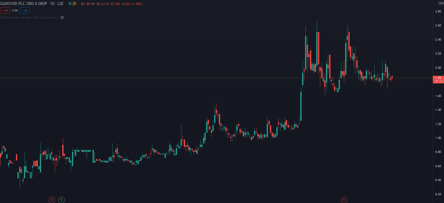 Gunsynd shares are currently trading at 1.85p, up 1.58% on the day.