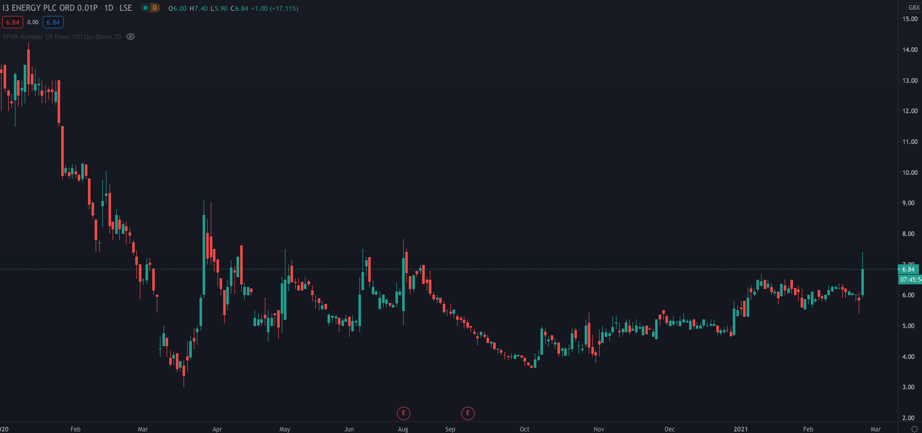 I3’s share price is currently up 17.11% at 6.84p.