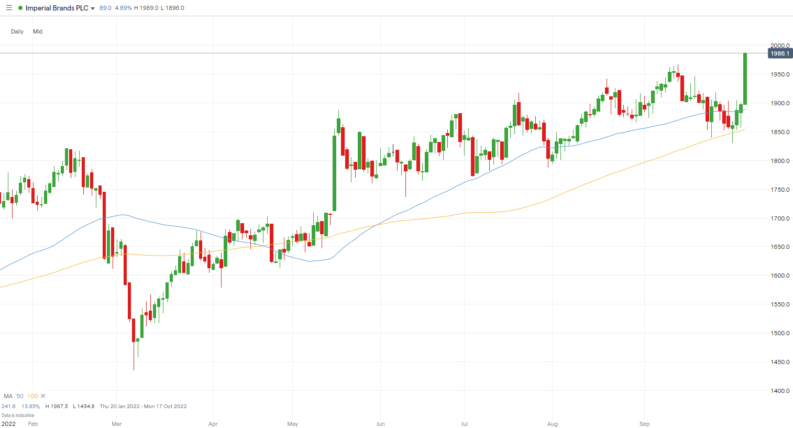 Imperial Brands (LON: IMB) shares jumped over 4% in the early part of Thursday’s session after it released a trading statement announcing a £1 billion share buyback programme.