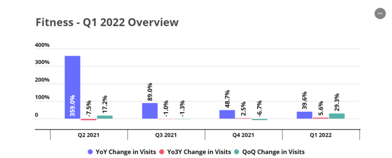 Whether it is based on Covid or other wellness-related factors, consumers are becoming more health-conscious, with fitness club visits in Q4 and Q1 exceeding pre-pandemic levels, according to Placer.ai.