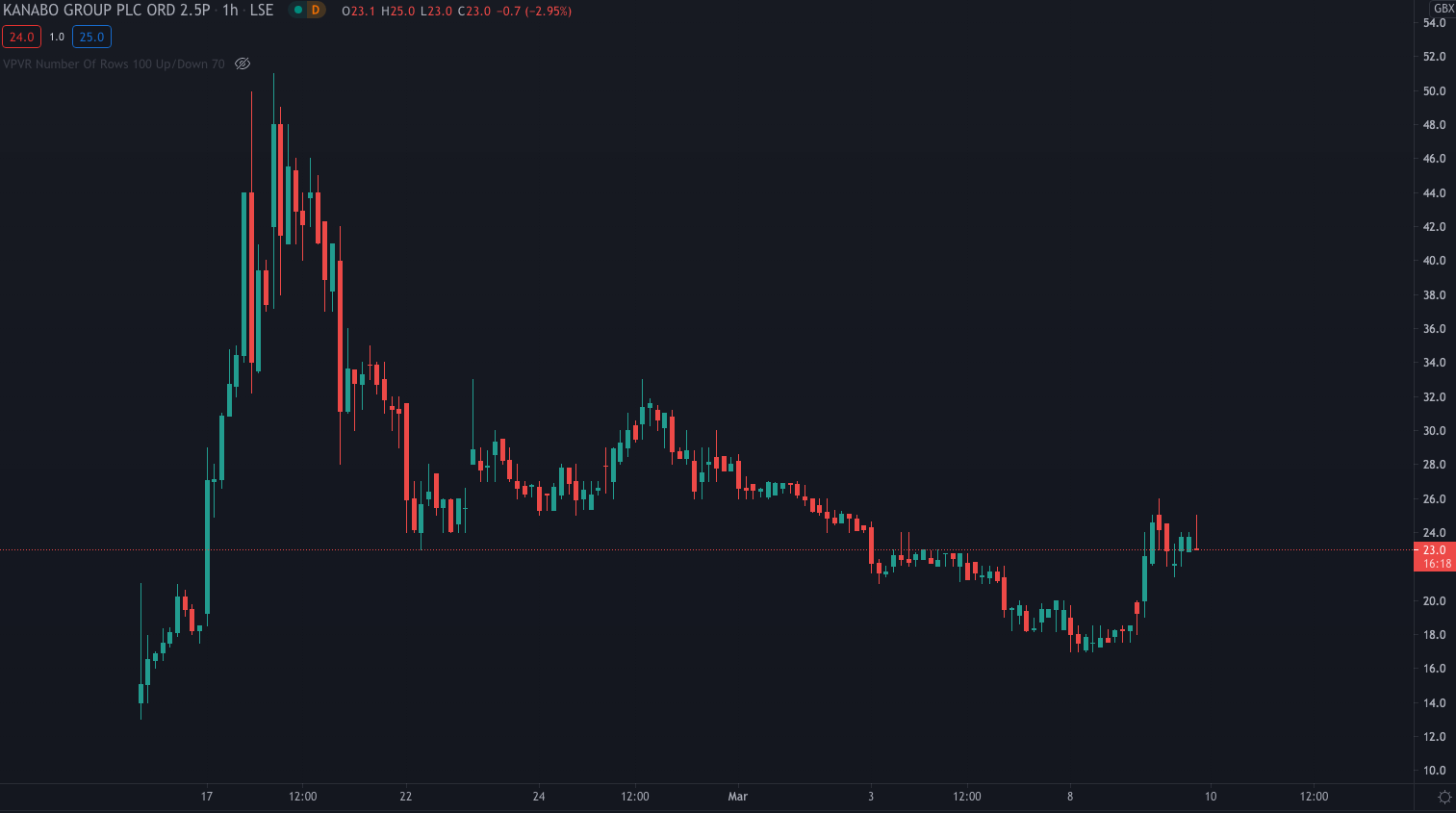 Kanabo’s shares closed the day 24.3% higher at 23p per share.