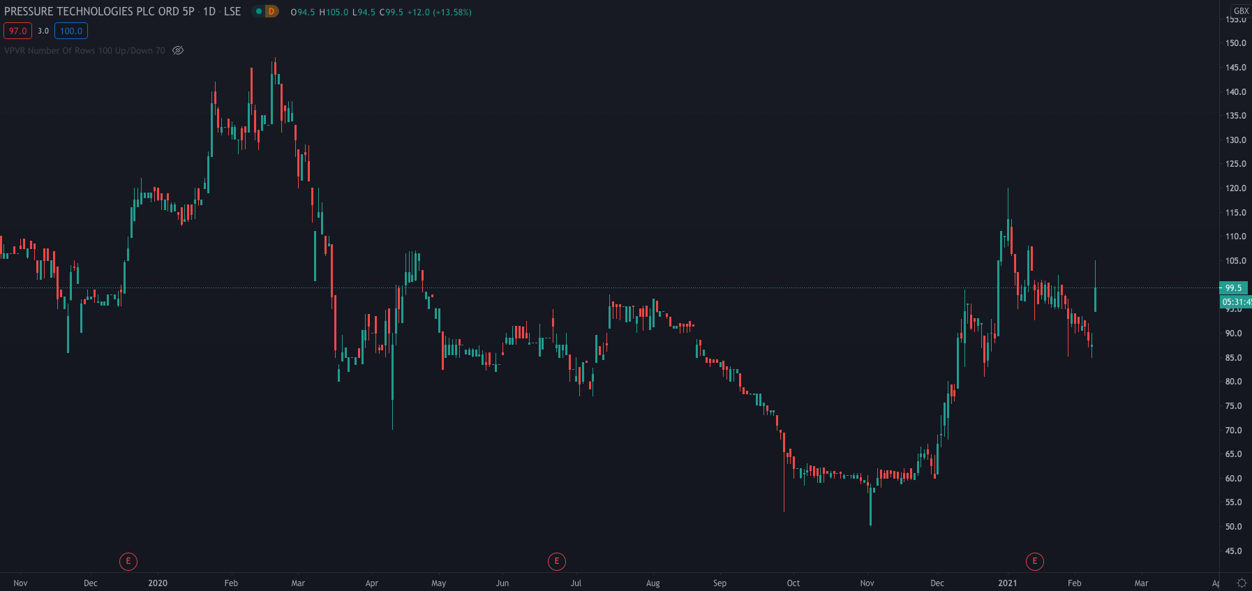 Pressure Technologies shares jumped to highs of 105p following the news. They are currently trading at 99.5p up 13.58%.