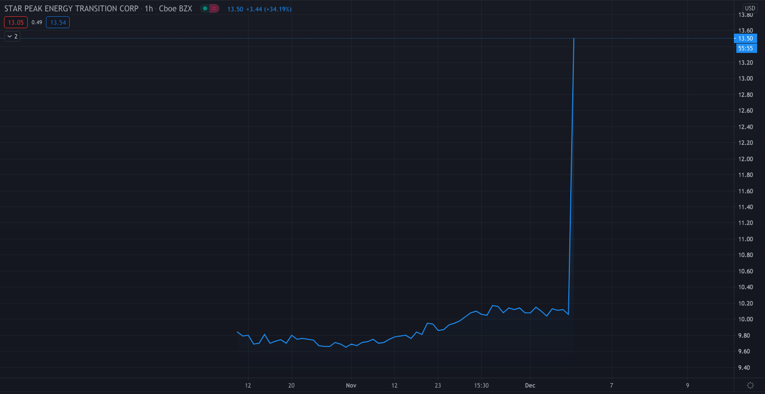 Shares of Star Peak are up 34.19% at $13.50 after closing Thursday’s regular session at $10.06.