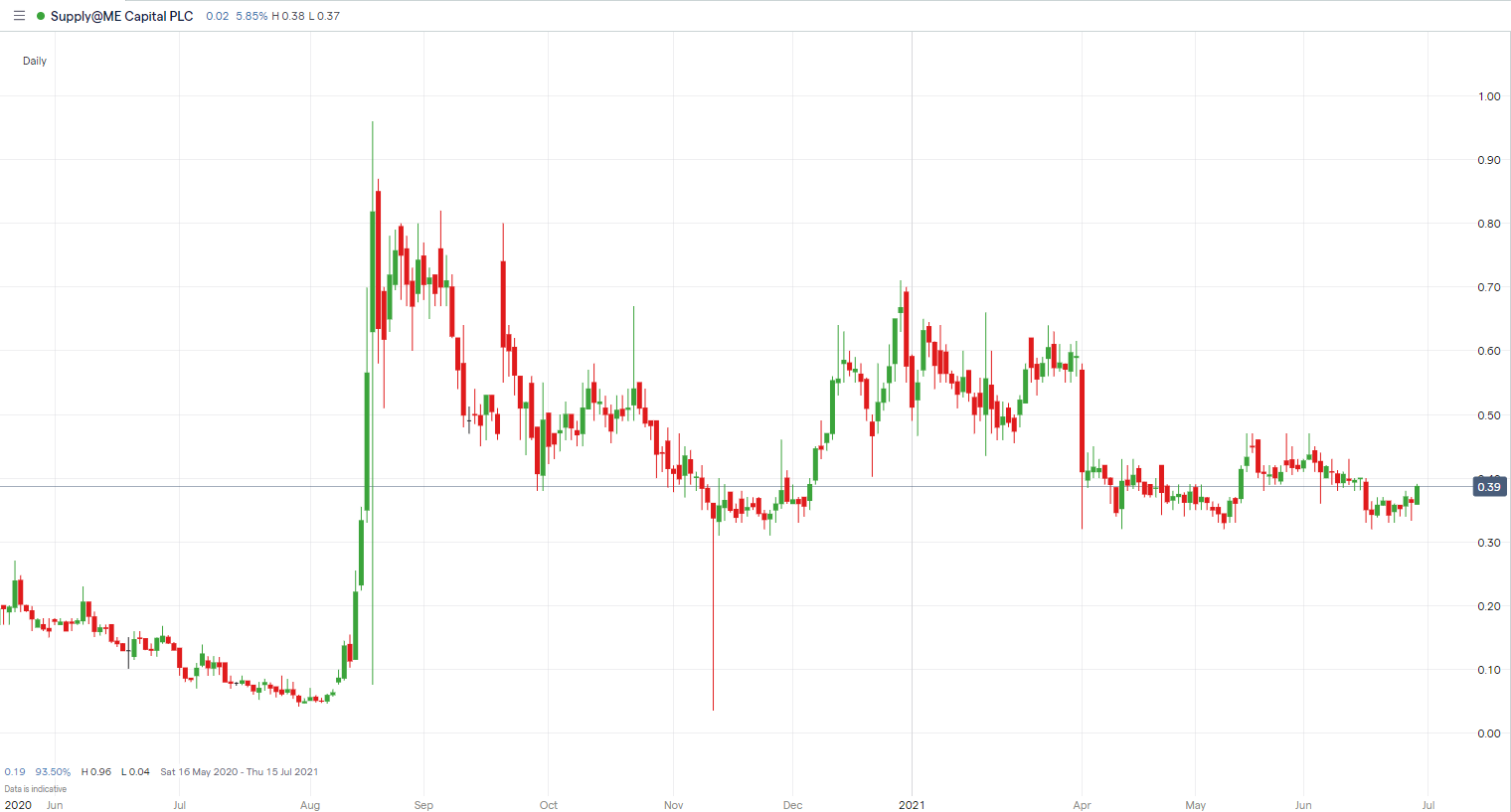 Supply@ME’s share price is currently trading at 0.3814p, up 6.26%. SYME shares are down 33% for the year to date.