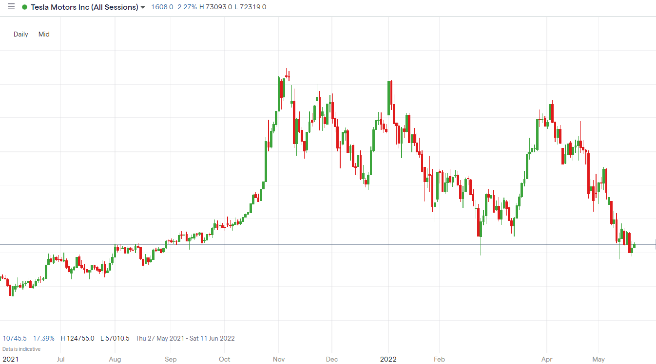 Tesla stock closed down 6.8% on the day it was removed from the ESG index, while it has declined over 32% so far in 2022. Tesla’s P/E ratio, as of May 19 is 96.31.