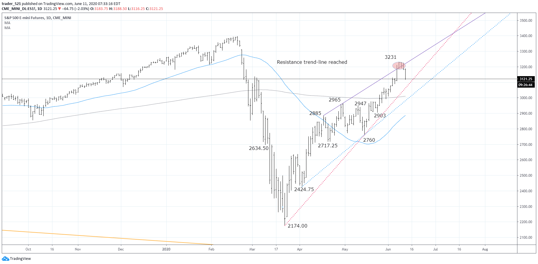 - After a great drop of more than 5% yesterday the US futures rebound from the 200 SMA and trend line supports noted in the chart. Today we may have a slower day as we are trapped in yesterday range with limited up and downside as the investors will try digest the new prices and volume should come in from bulls and bears to see who’s winning the battle. Avoid trading it and consider the futures rollover as well.