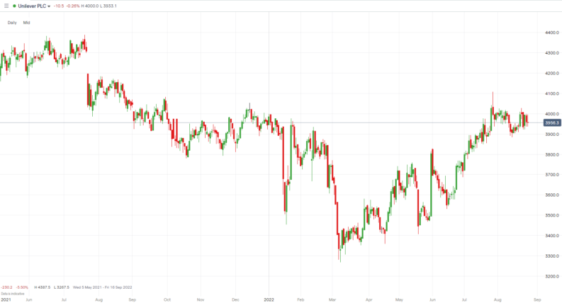 Looking at its share price, Unilever shares are down 3.96%. Similar to Burberry below, they are fairing better than many others. Over the last 12 months, the stock is down 3.05%, but it has rallied 12% in the last three months, and its performance merits that recent climb.