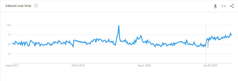 When looking at Google searches for “freelance jobs,” It is somewhat surprising that the pandemic didn’t result in a more substantial rise in search intent, although there was an initial spike. However, since the end of 2021, there has been a sustained increase.