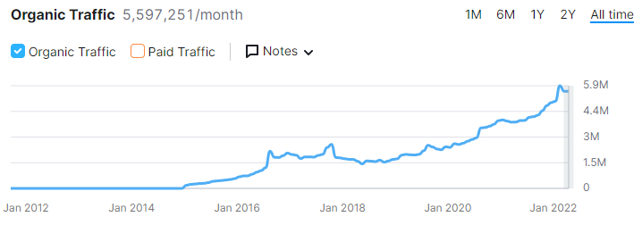 From the Semrush chart above, we can see web traffic stats for Upwork.com, with the top chart showing the past two years and the bottom showing traffic since 2015. Unsurprisingly there has been a significant rise over the last few years.