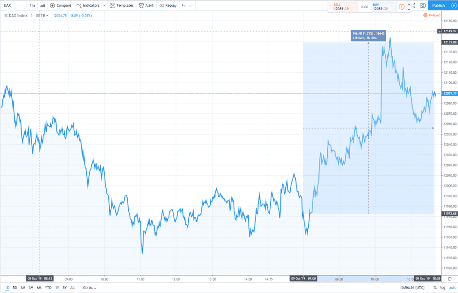 DAX Index (XETR: DAX) – Price chart 8th October – 9th October – Intraday