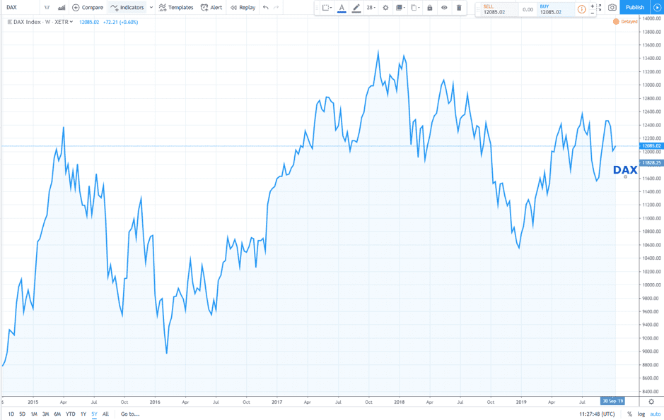 DAX Index (XETR: DAX) – Five-year price chart 2014-2019
