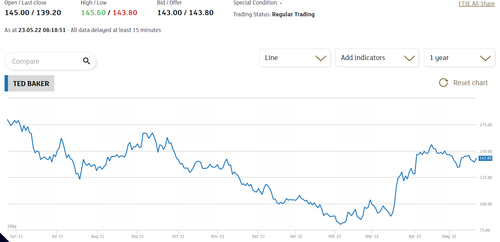As management says, there’s no certainty that there will be a full offer but given that there are several making indications it does seem pretty likely that there will be. Which then leaves us with, well, what is the price to be offered going to be? It seems likely that it will be above current market price for if it weren’t it’s difficult to see the Ted Baker management accepting it. But how much higher?