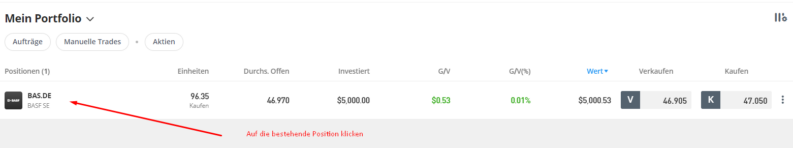 Klicken Sie zunächst auf die bestehende Aktienposition, die Sie verkaufen möchten.: