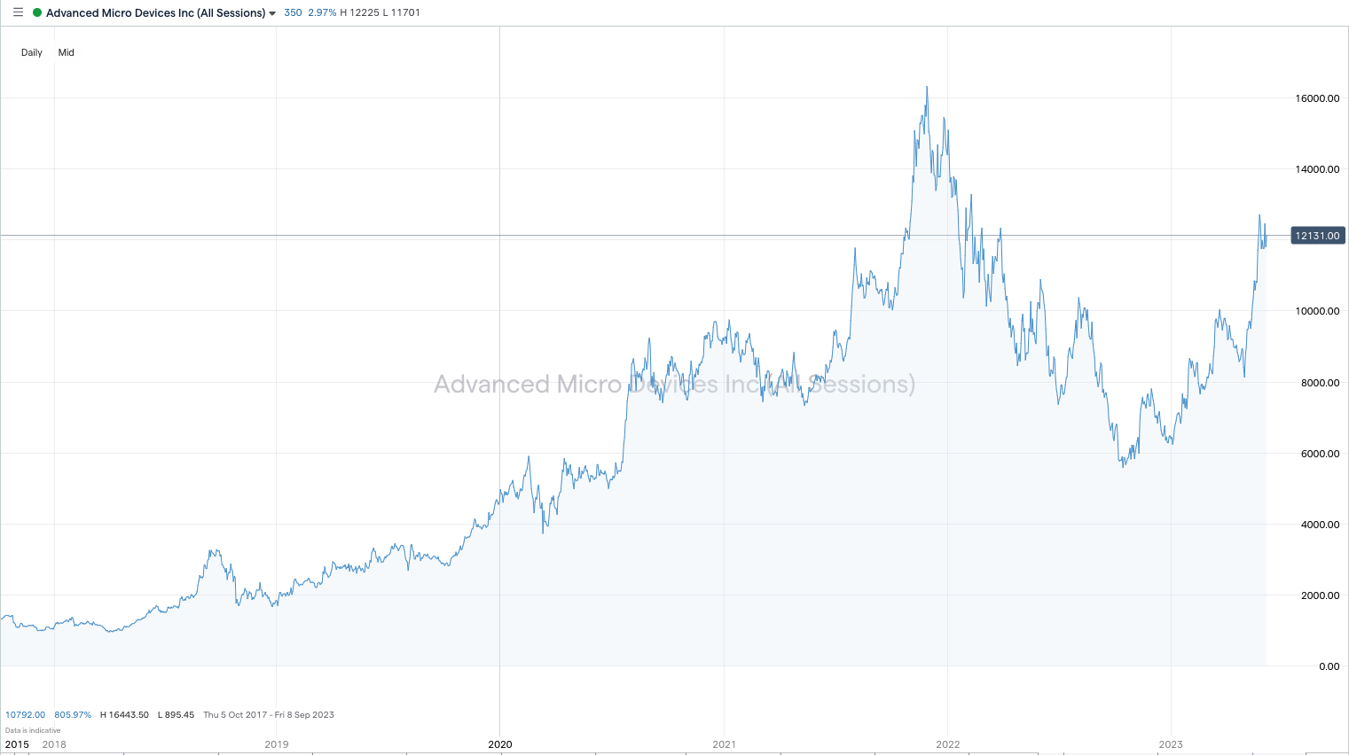 Semiconductor chip maker (AMD) is another company that could benefit from the rapid rise of AI. The hardware the firm makes for electronic devices, such as the Ryzen 5000 PC chips, is regarded as high-quality and generally superior to its rival, Intel.