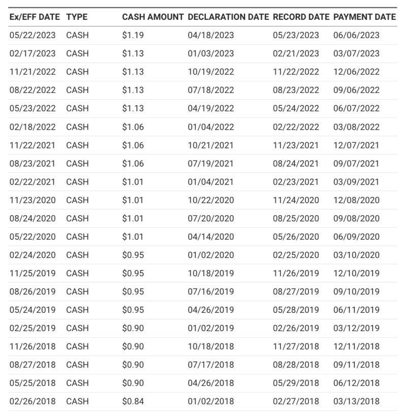 The US healthcare giant JNJ has a strong history of dividends that have continuously grown over a number of years. According to Dividend.com, JNJ’s dividend has increased consecutively for 62 years.