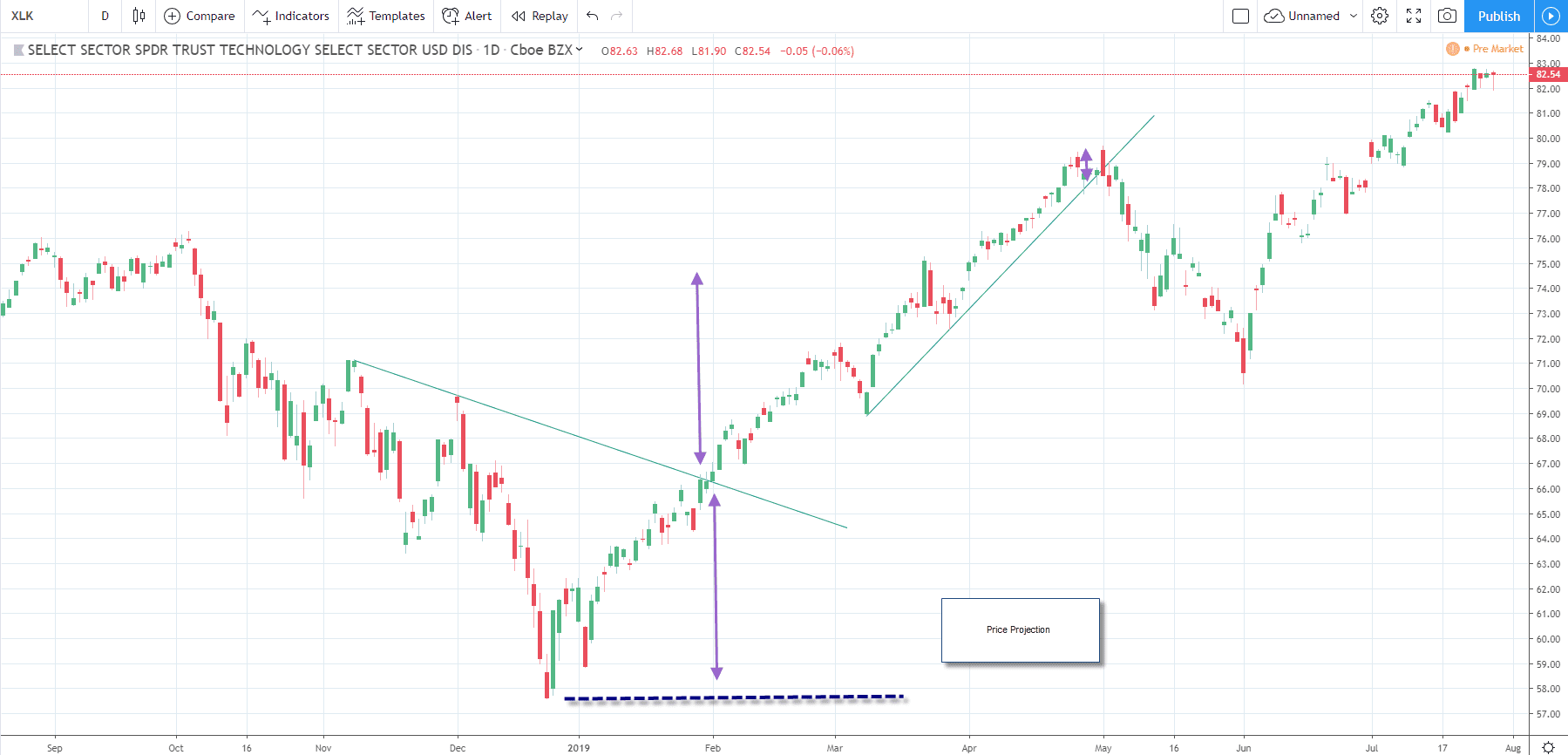 In subsequent years following the first publication of the book in 1994, there have been many other projection guides. One such guide is to use a specific percentage. For example, if you plan to risk 2%, the reward you should expect from a TD breakout or breakdown should be 2%. The idea is that you will win more than you lose when using the TD strategy.