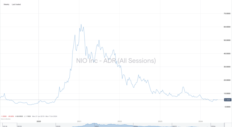Nio shares are listed on the New York Stock Exchange under the ticker NIO. The firm’s IPO on the NYSE was in September 2018 at a launch price of $6.00. However, its market cap has swung around dramatically in the last few years. Both optimism and pessimism may or may not be unfounded, but the stock has struggled recently.